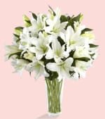 Lilyumlar, Astomerialar, sarı papatyalar ve aksesuar yeşillikler... Cam vazoda harika durdular.