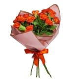 Cam vazo içerisinde turuncu çardak güllerden oluşan derlemedir.