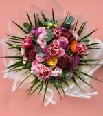 Paşabahçe vazo içerisinde ithal beyaz papatyalar ( Kır Çiçekleri) turuncu çardak ve pembe çardak güller ile hazırlanmaktadır...